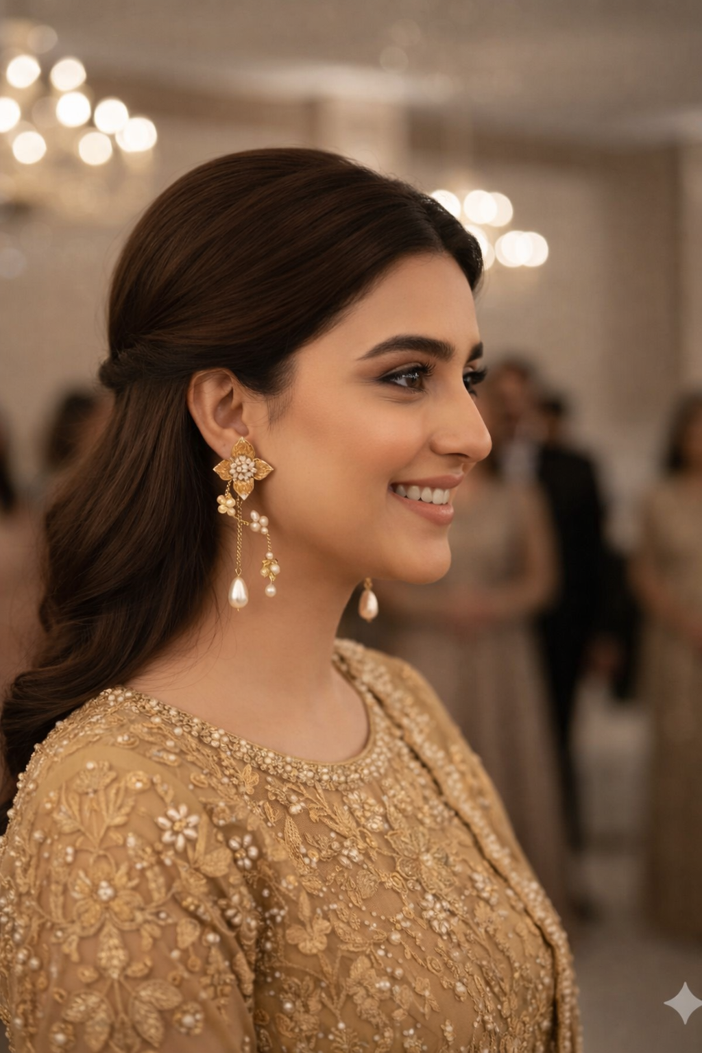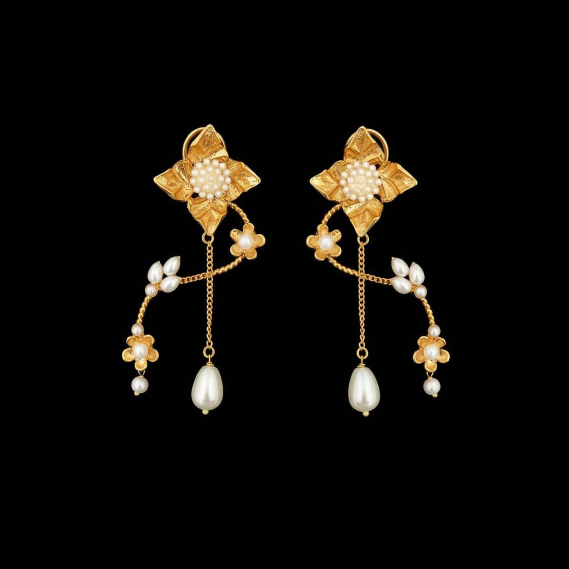 The Zephra earrings are a timeless blend of elegance and craftsmanship, designed to elevate your look with a graceful golden glow. Delicate detailing and a refined finish make them perfect for both festive occasions and formal wear.